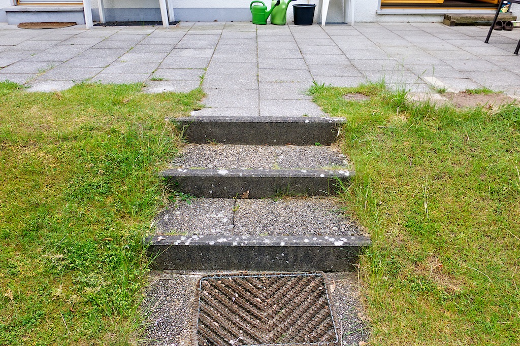 Die letzten 4 Wochen hat uns unser „Projekt 2015“ auf Trab gehalten. Wir hatten bis heute keinen barrierefreien Zugang zum Haus. Der Hauseingang vorn kam für einen Umbau nicht in Frage, da alles zu eng und verwinkelt ist. Außerdem wäre so eine einfache Nutzung der Terrasse und des Gartens nicht möglich gewesen. Deshalb haben wir uns entschlossen, die Terrasse mit WPC-Profilen um 20cm zu erhöhen und die 3 Treppenstufe durch eine breite Rampe zu ersetzen. Jetzt ist durch die Handwerker endlich alles soweit fertig gestellt, lediglich die Verkleidung und Bepflanzung auf der rechten Seite fehlt noch. Aber Marion braucht ja bei knapp 40 Grad auch noch eine Beschäftigung und entwickelt sich so langsam zum Garten- und Landschaftsbauer 🙂